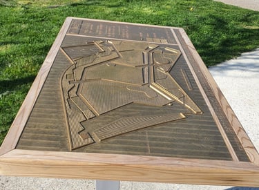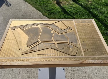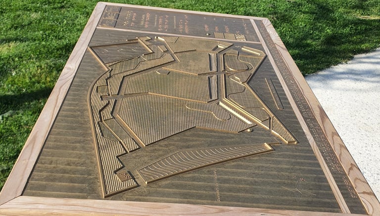 La plaque intègre un plan en relief du site, les issus, les cheminements…permettant aux usagers de se déplacer facilement et en toute sécurité